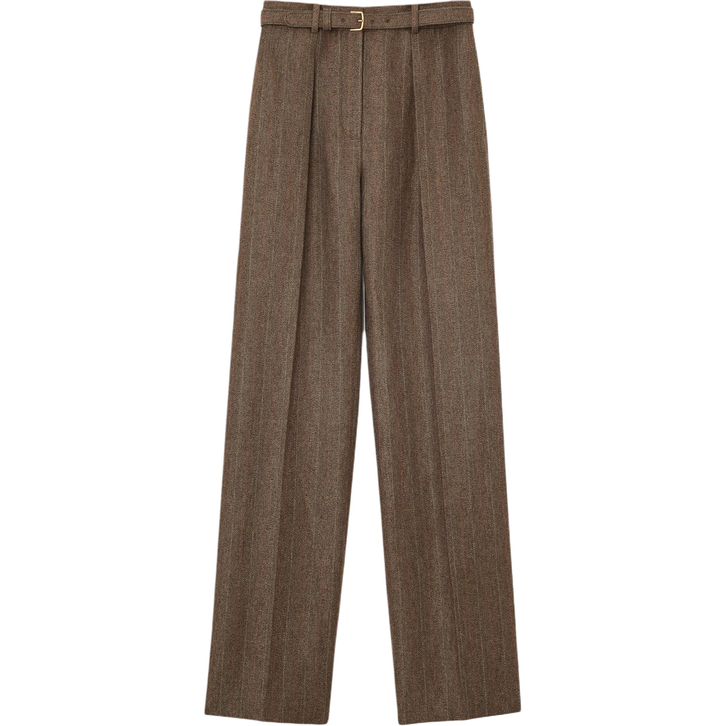 Loro Piana Edward 羊毛直筒长裤休闲裤 女款 棕色