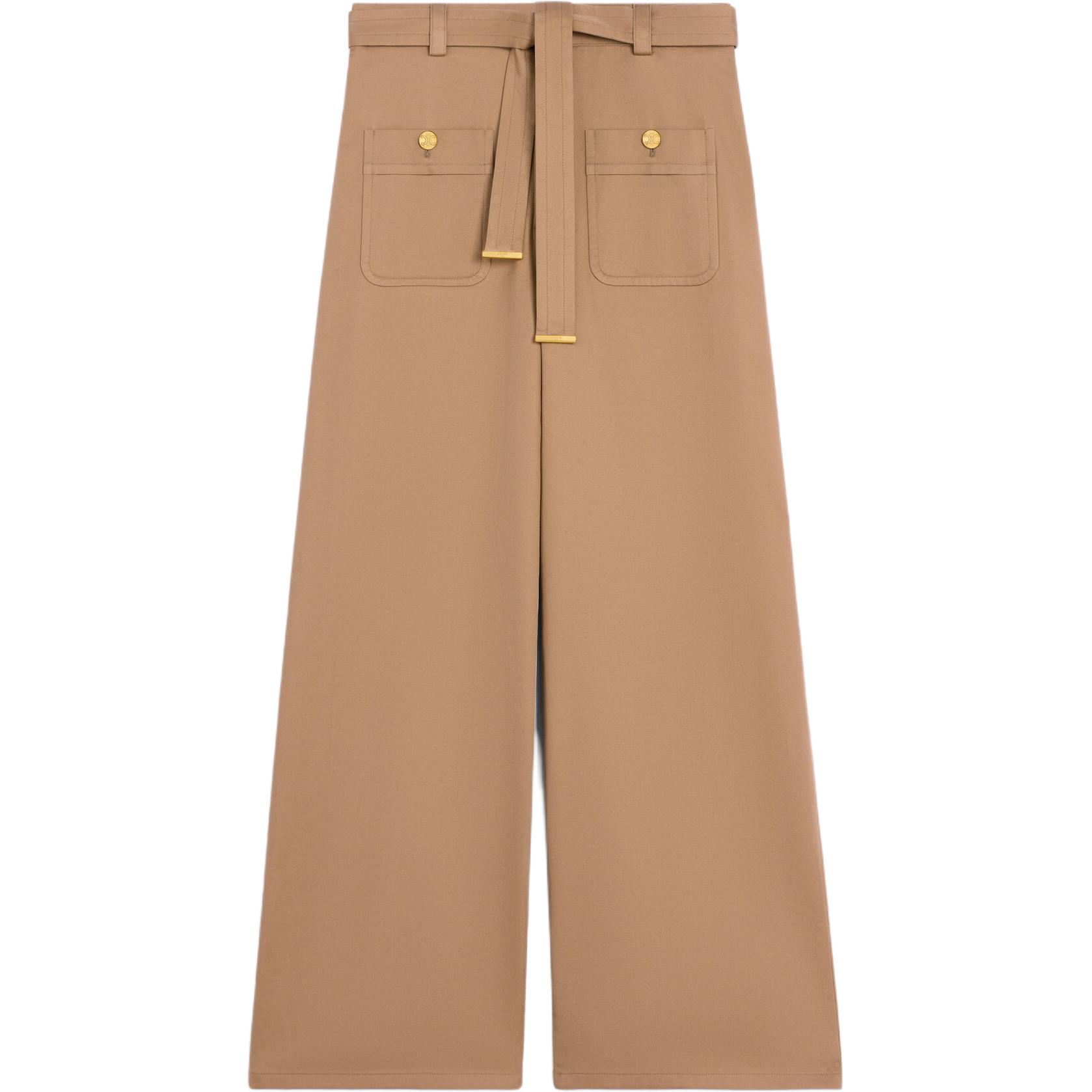 CELINE赛琳 SS25 Taillat 高腰喇叭裤腿金属扣腰带休闲裤 女款 焦糖色