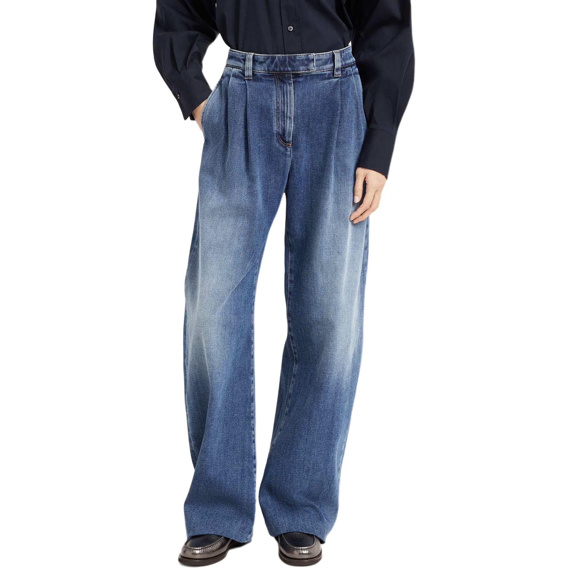Brunello Cucinelli 棉质粗斜纹布宽松弧形弯刀裤牛仔裤 女款 蓝色