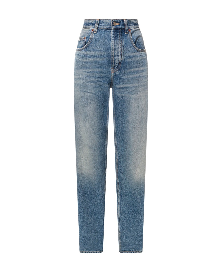 SAINT LAURENT圣罗兰 FW23 中腰纽扣褶皱宽松直筒牛仔裤 女款 蓝色