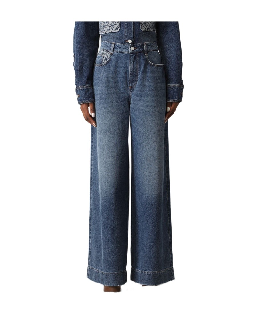 Stella McCartney 水洗做旧宽松阔腿牛仔裤 女款 蓝色
