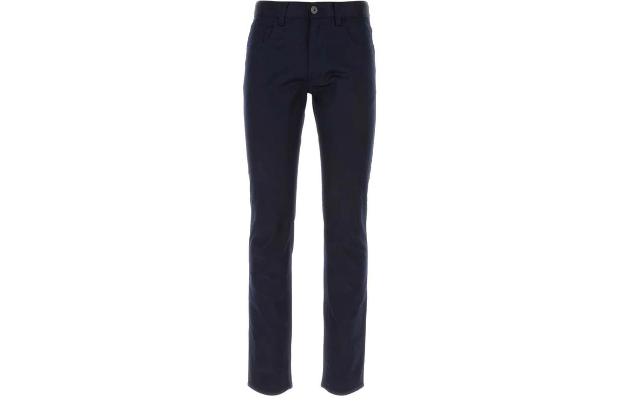 PRADA普拉达 SS24 纯色高腰直筒拉链修身休闲裤 男款 海军蓝