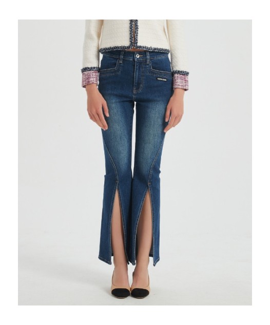 前开衩牛仔裤