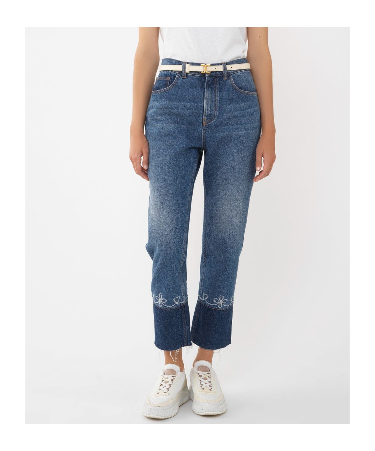 Stella McCartney 纯色宽松阔腿牛仔裤 女款 蓝色