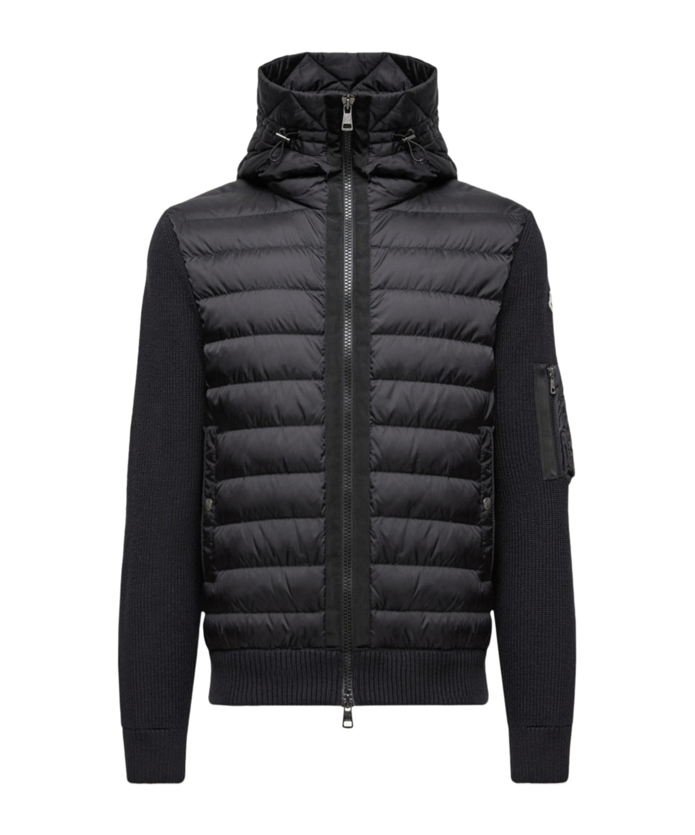 Moncler盟可睐 Padded Corduroy系列 Padded Zip-Up Cardigan 拼接羊毛徽标连帽拉链长袖羽绒服 男款 黑色