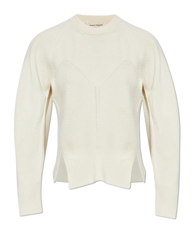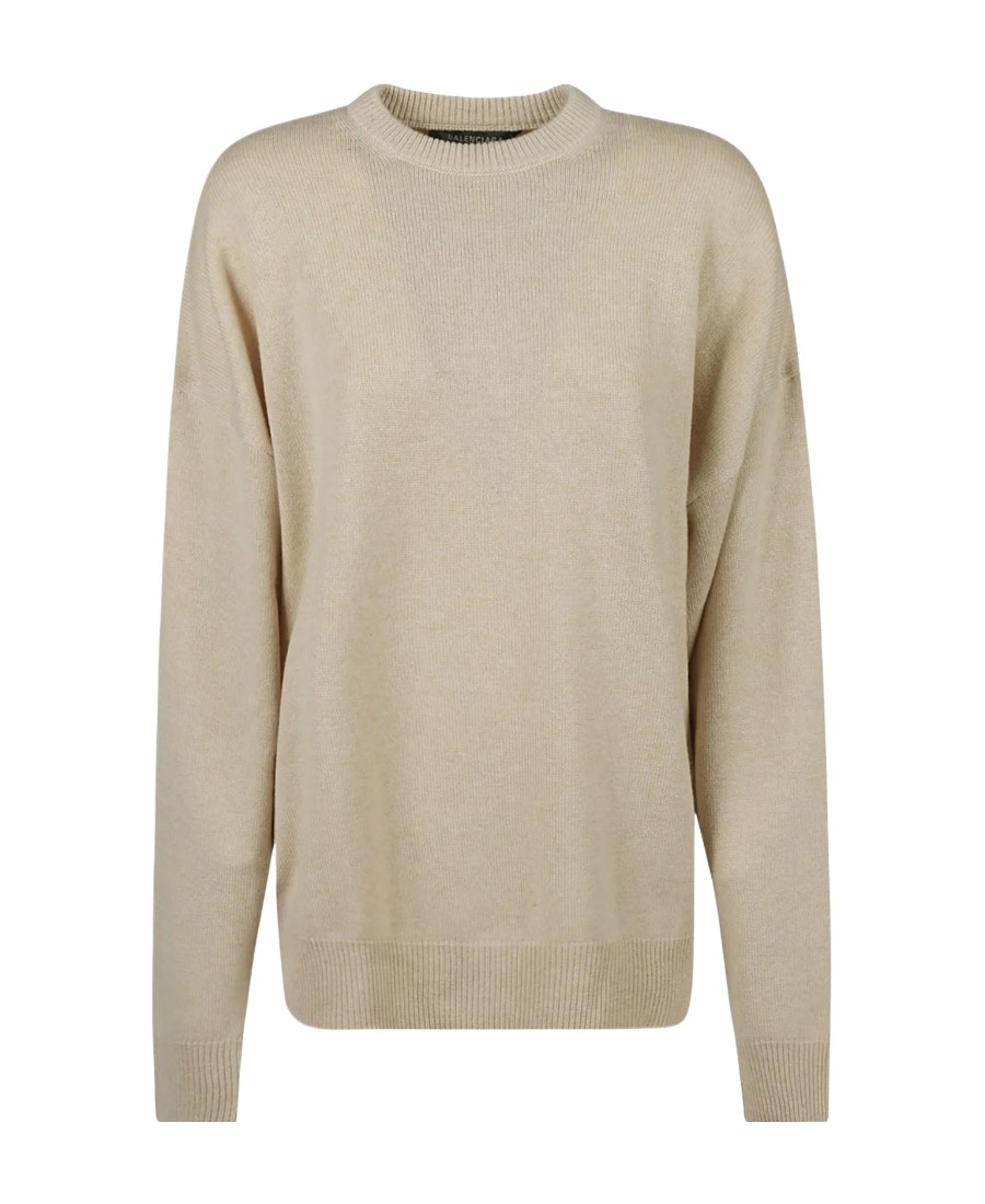 Balenciaga巴黎世家 logo印花纯色圆领套头直筒长袖毛衣 女款 米黄色
