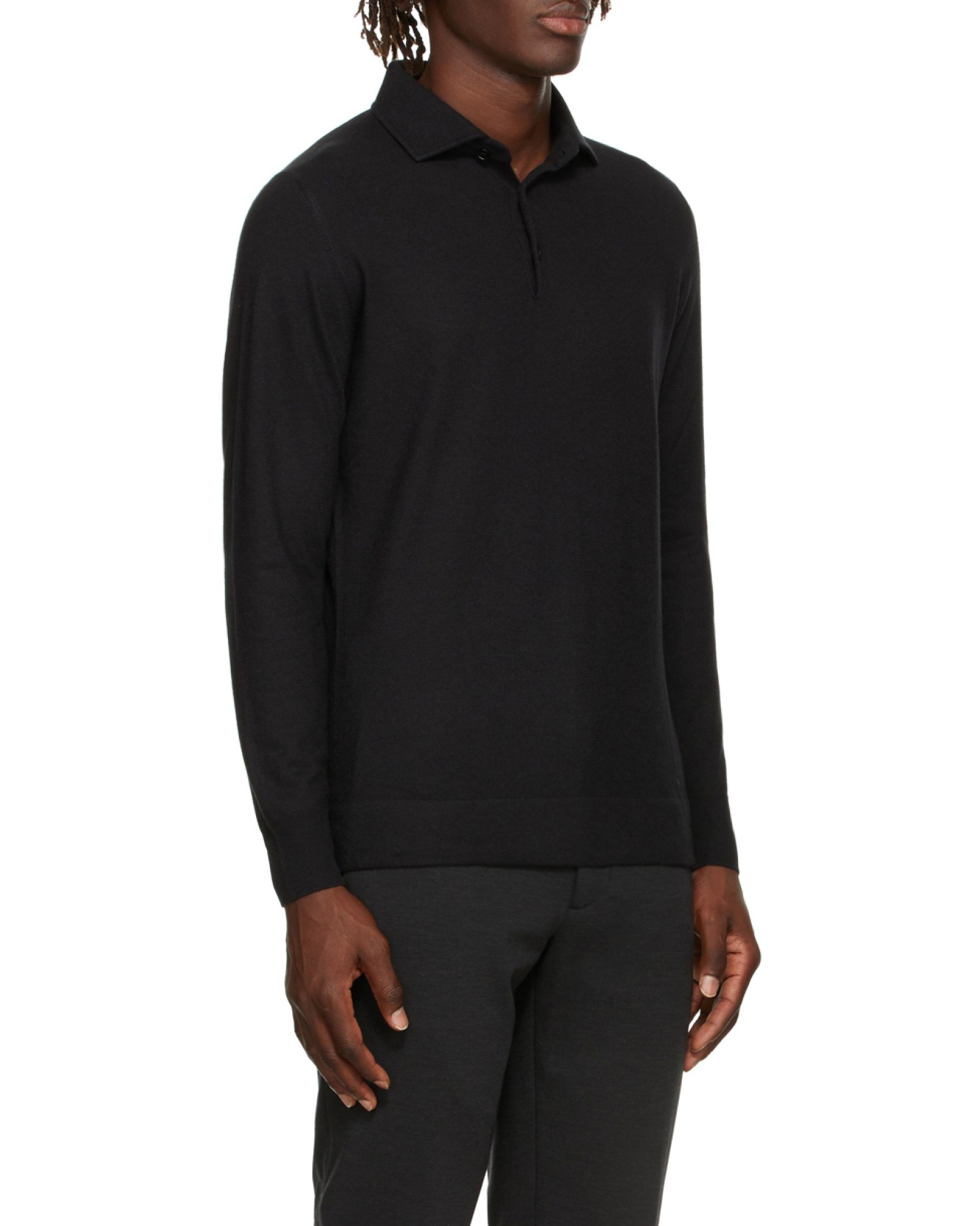 Loro Piana 纯色套头合身长袖Polo衫 男款 黑色