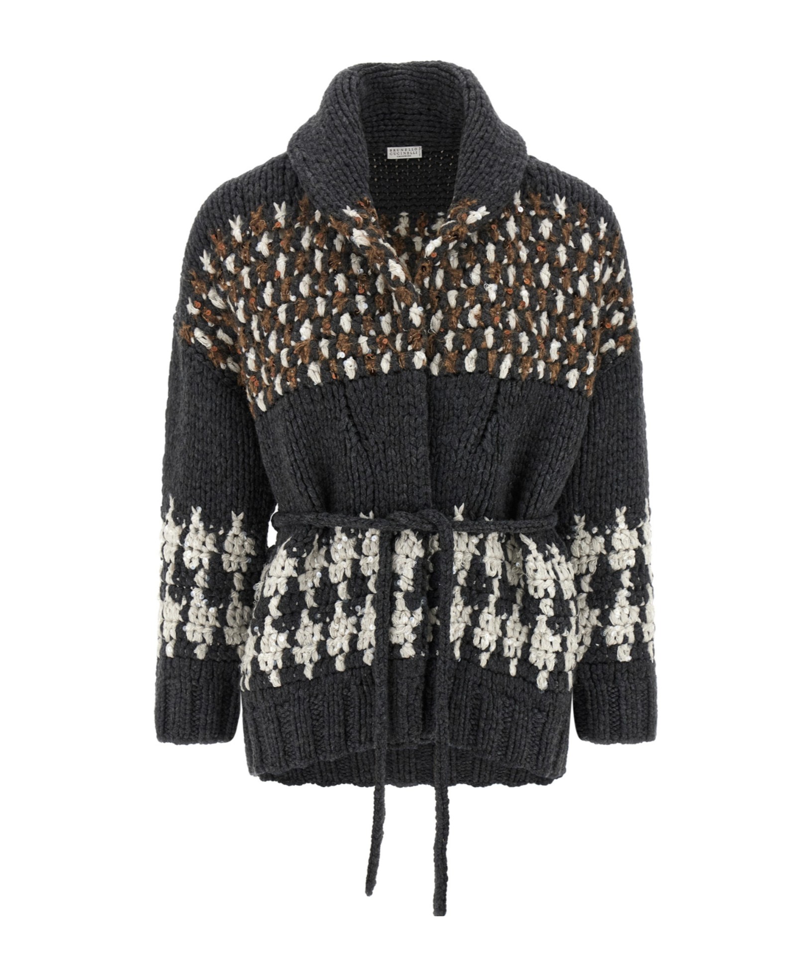 Brunello Cucinelli 翻领系带长袖羊绒衫 女款