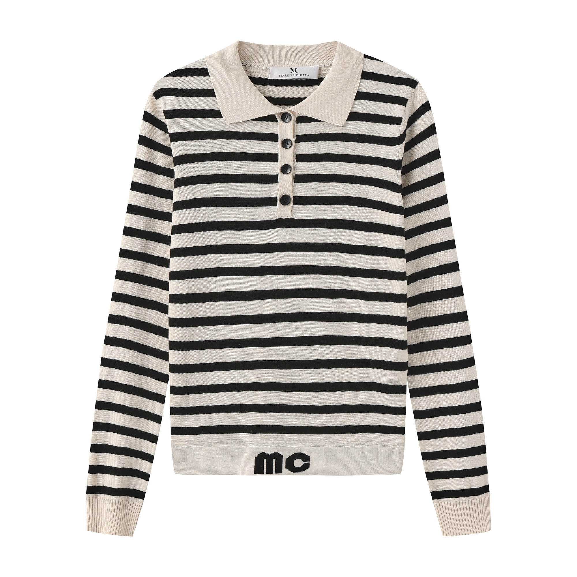 DIOR迪奥 FW25 棉质条纹字母刺绣卷领纽扣长袖羊绒衫 女款