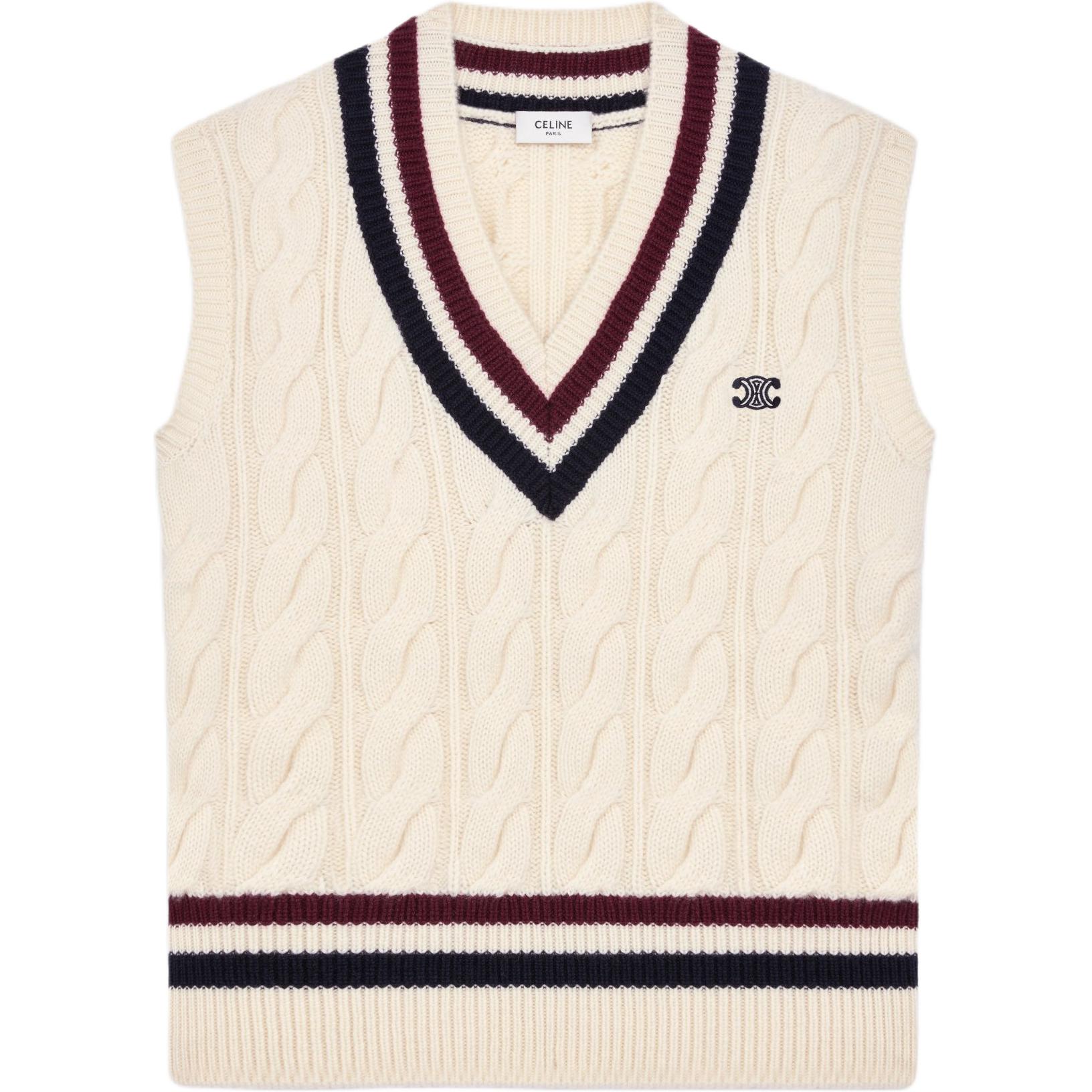 CELINE赛琳 SS25 春夏男士系列 V领套头粗针织背心 男款 米色
