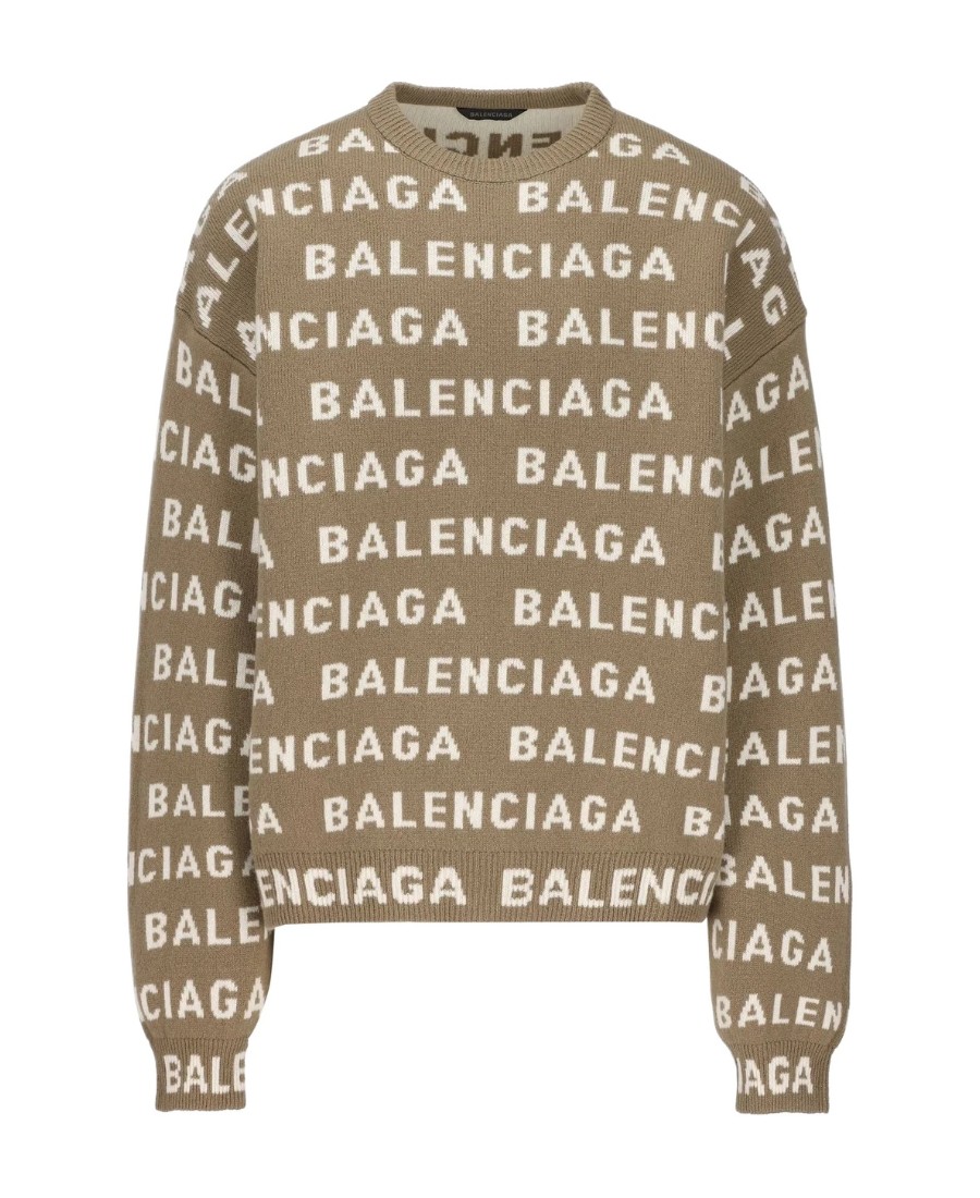 Balenciaga巴黎世家 FW23 字母嵌花圆领落肩长袖毛衣 常规版型 男款 棕色