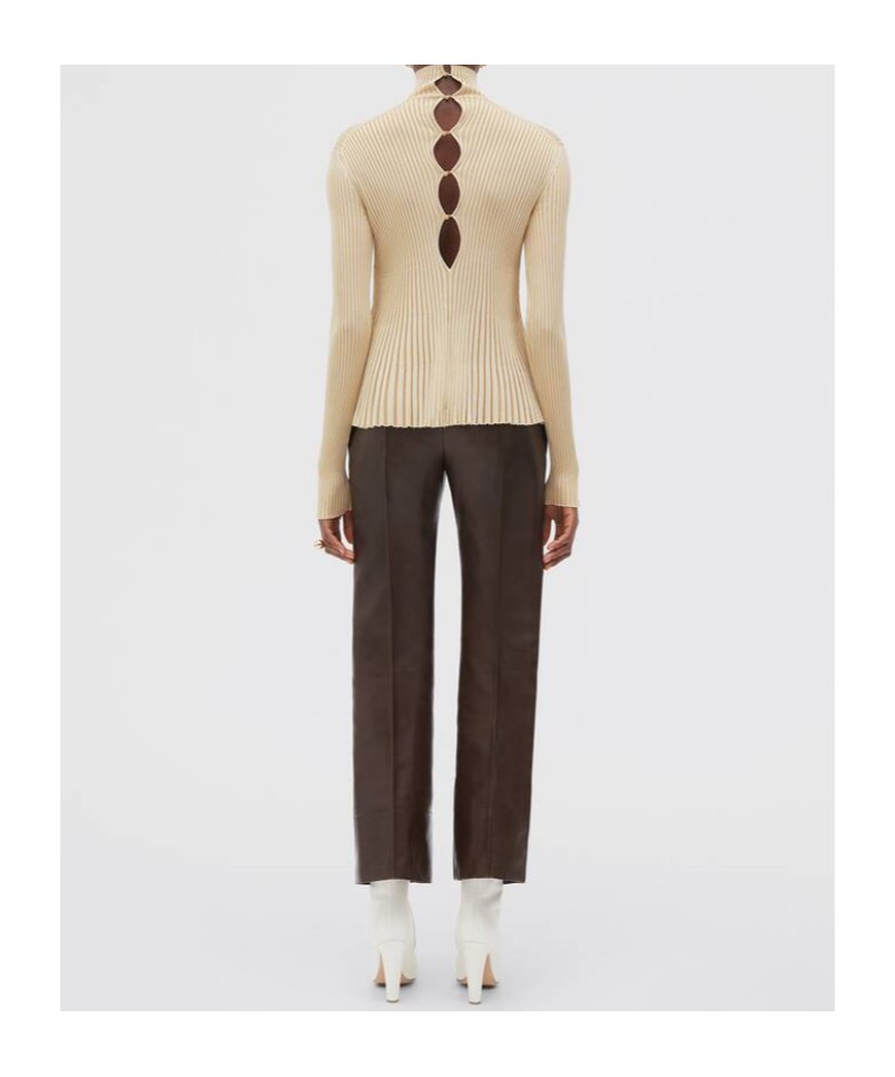 Bottega Veneta葆蝶家 FW22 纯色条纹高领套头长袖毛衣 女款 米白色