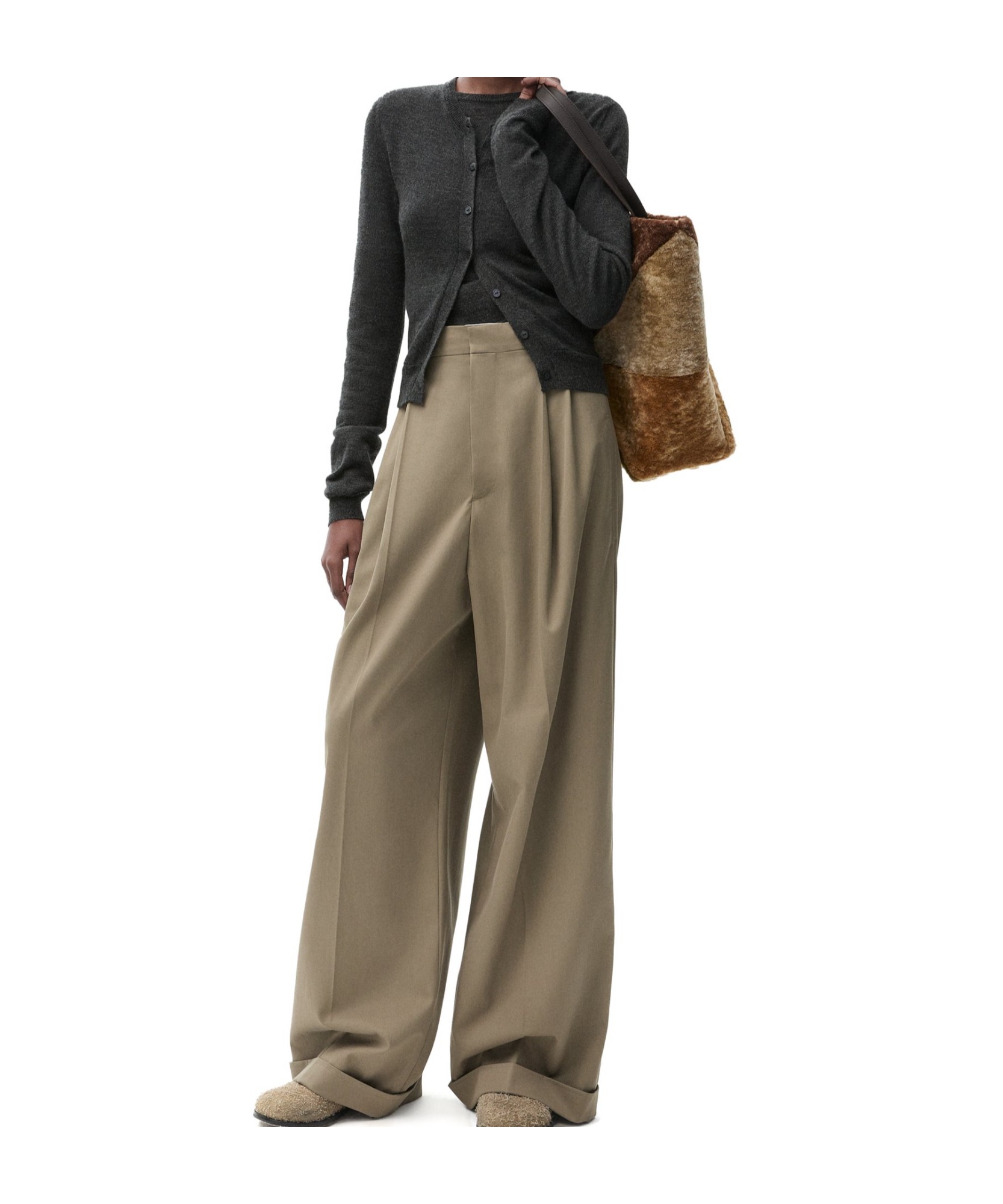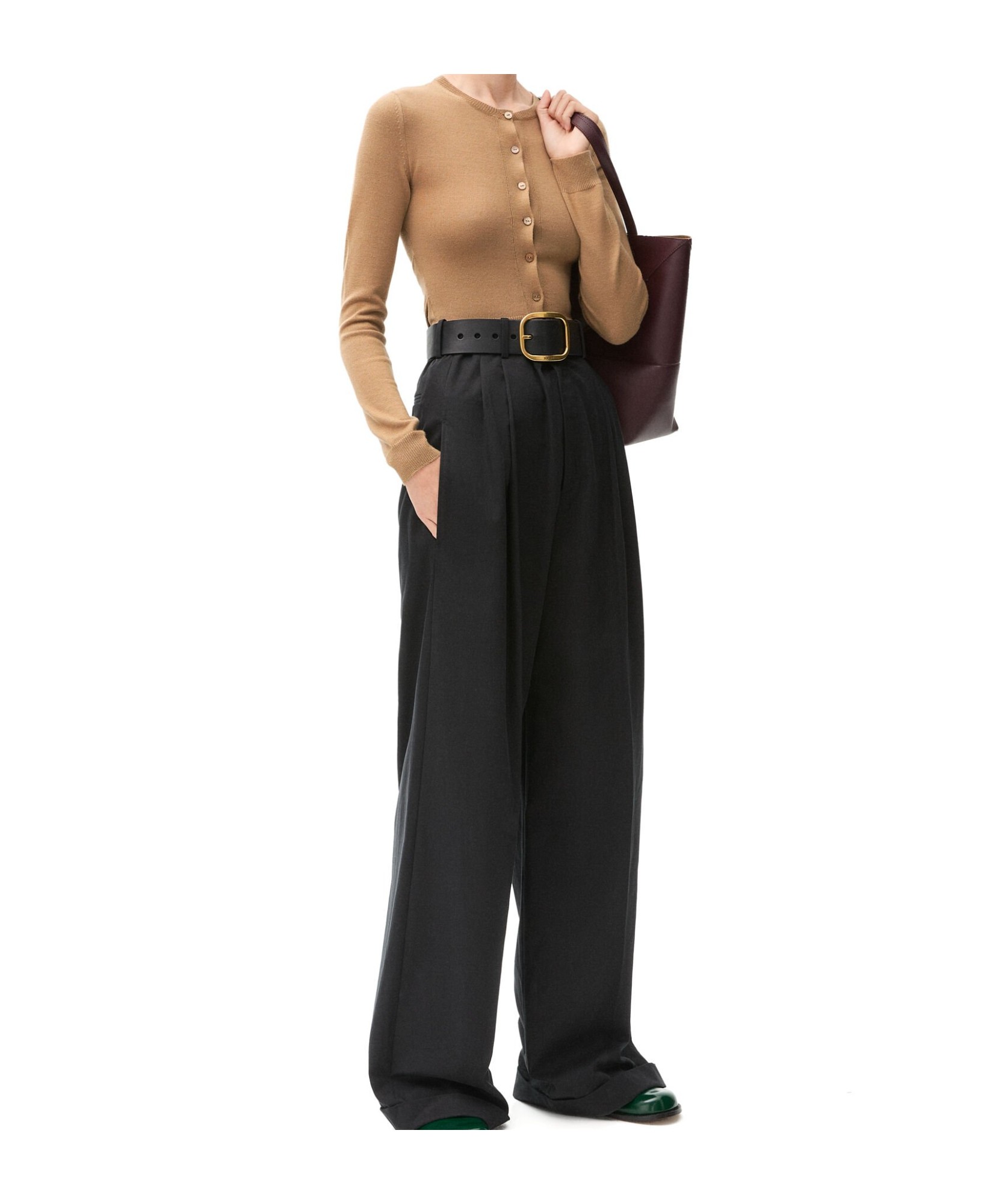 LOEWE罗意威 FW24 羊绒褶皱圆领开衫针织衫 女款 棕色