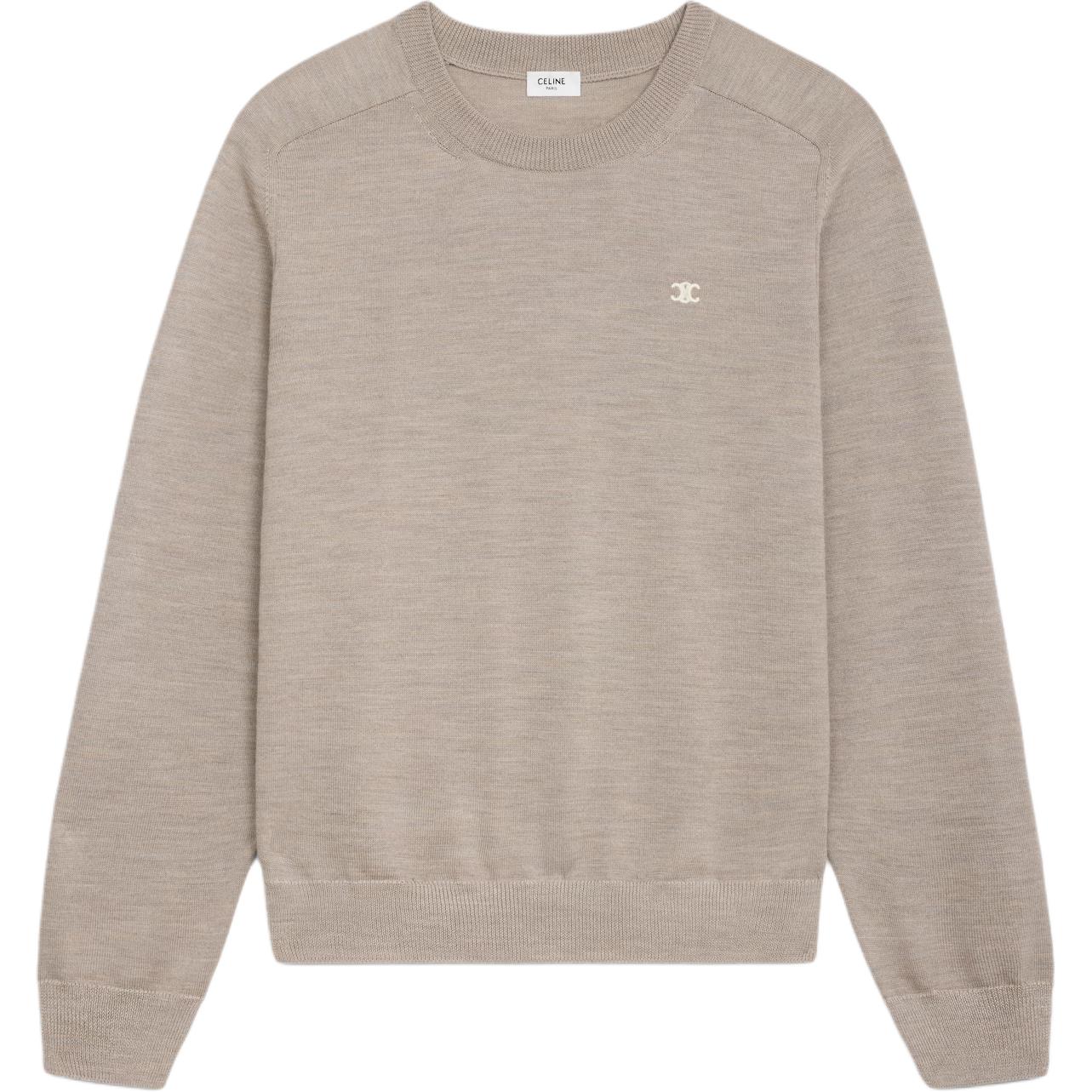 CELINE赛琳 徽标刺绣圆领宽松长袖毛衣 男款 米色