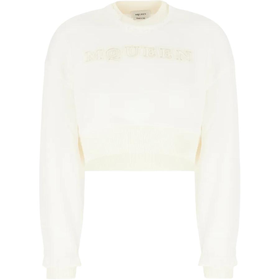 Alexander McQueen亚历山大麦昆 纯色字母徽标短款长袖 T恤 女款 光学白