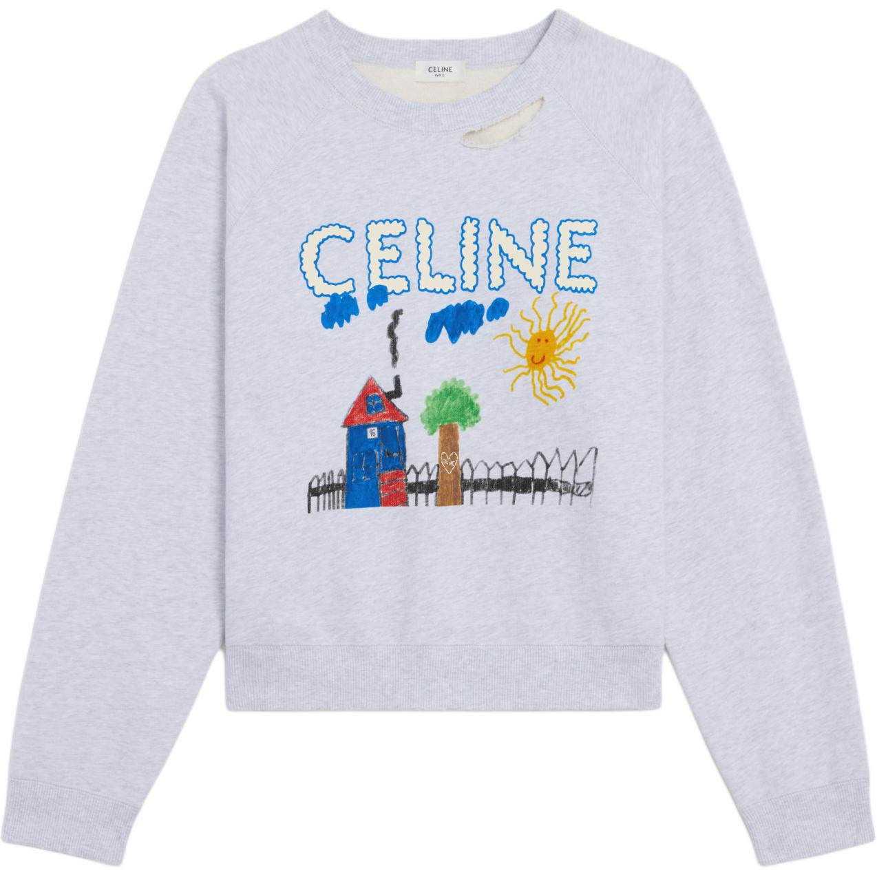 CELINE赛琳 SS25 DRAWING系列 圆领印花插肩长袖卫衣 男款