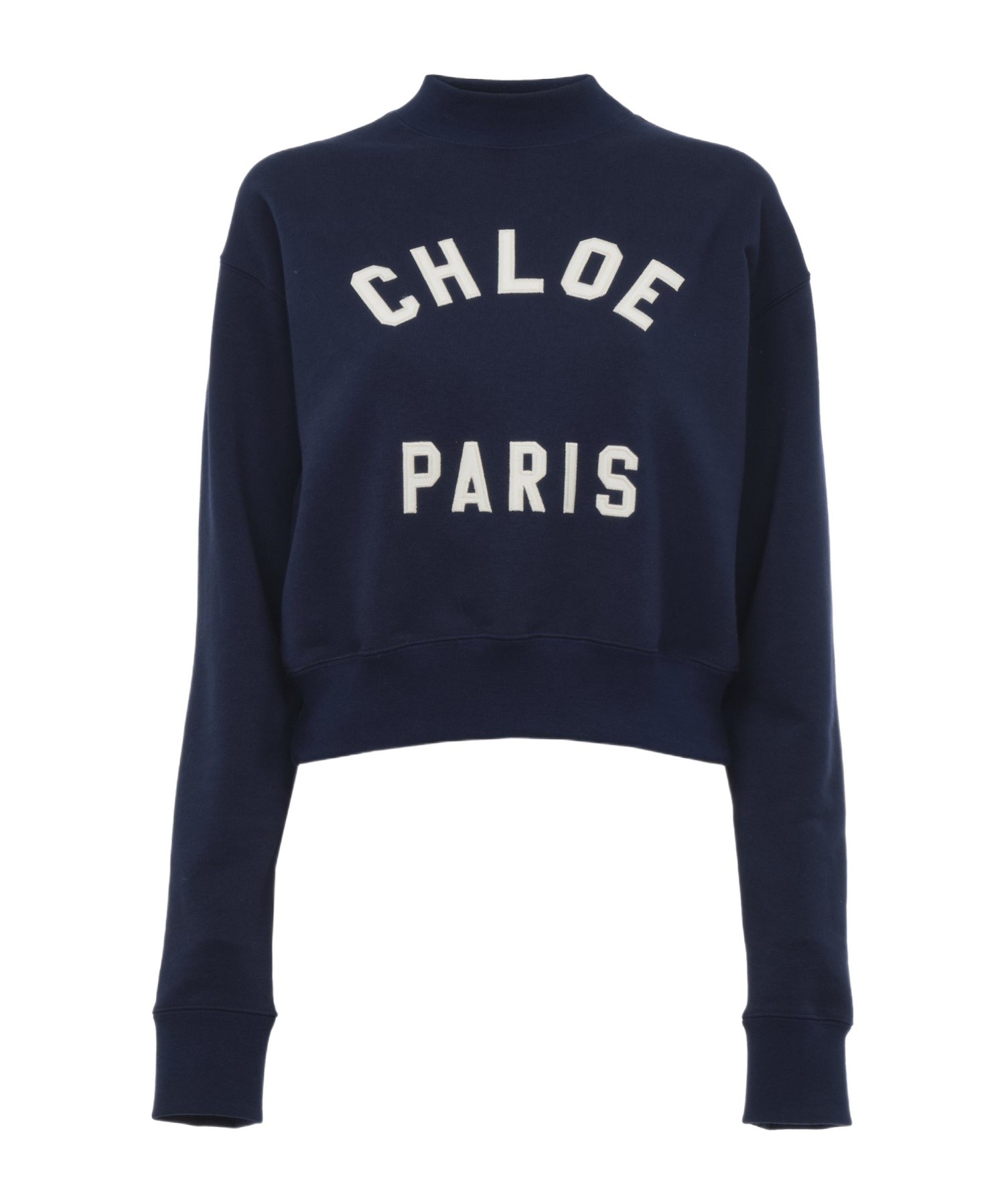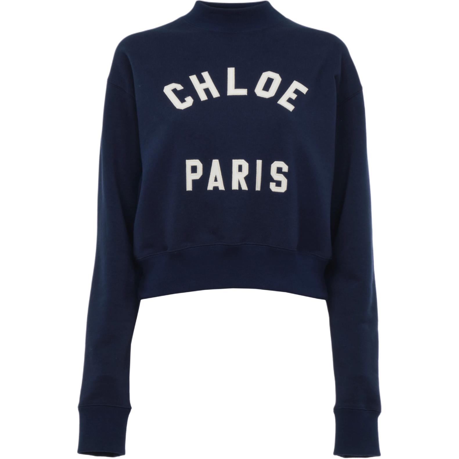 Chloe蔻依 FW24 Logo字母印花半高领短款宽松长袖针织衫 女款 海军蓝色