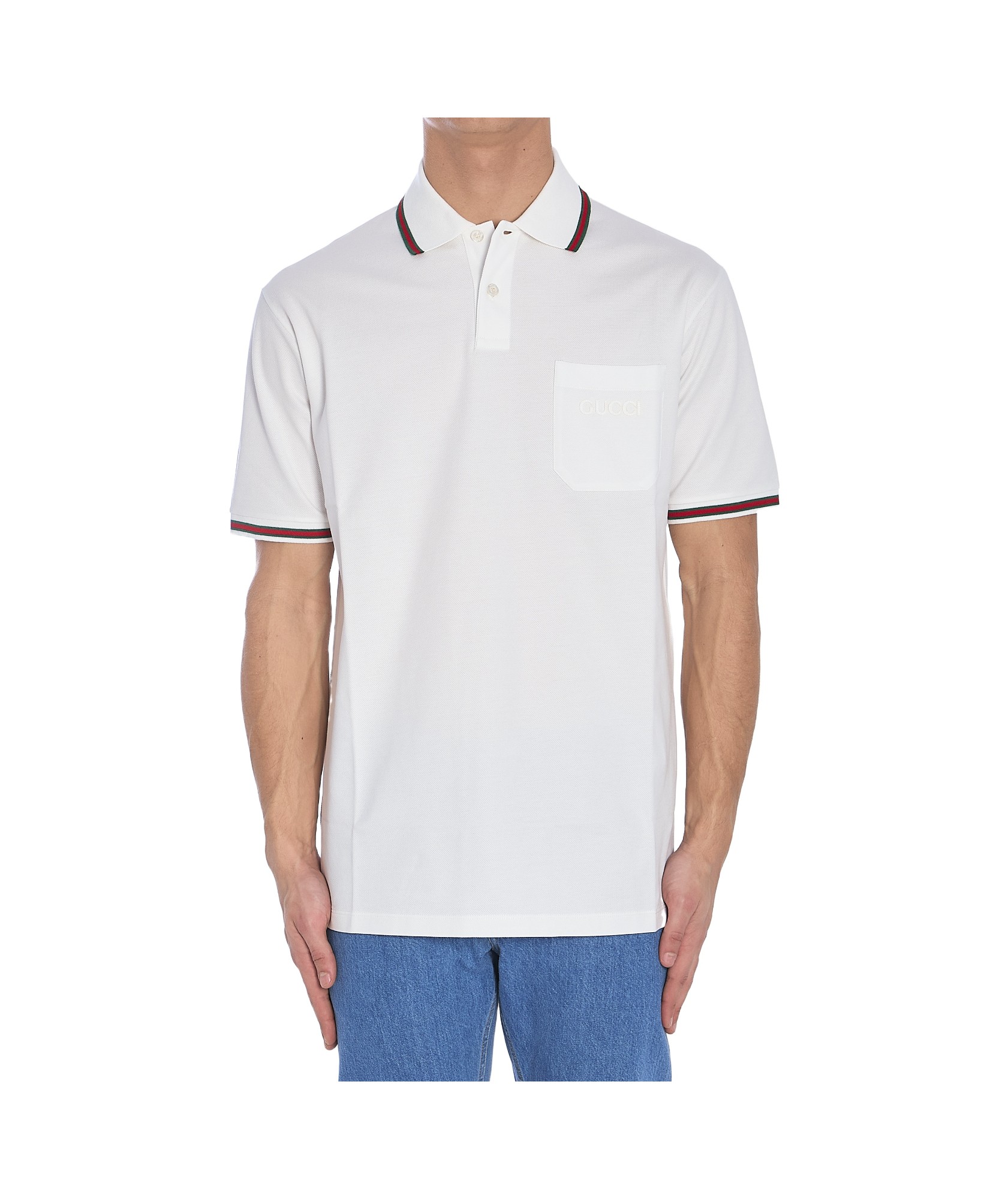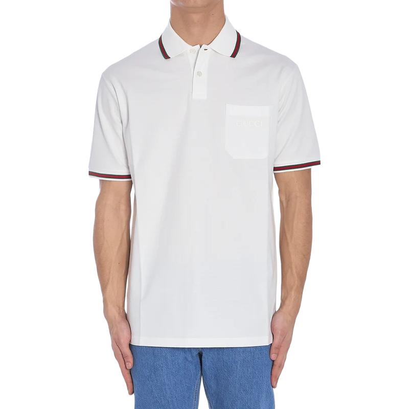 GUCCI古驰 SS25 撞色领口短袖口袋Polo衫 男款 白色