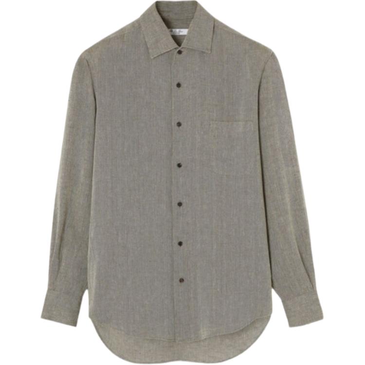 Loro Piana 褶皱胸袋单排扣长袖衬衫 男款 灰绿色