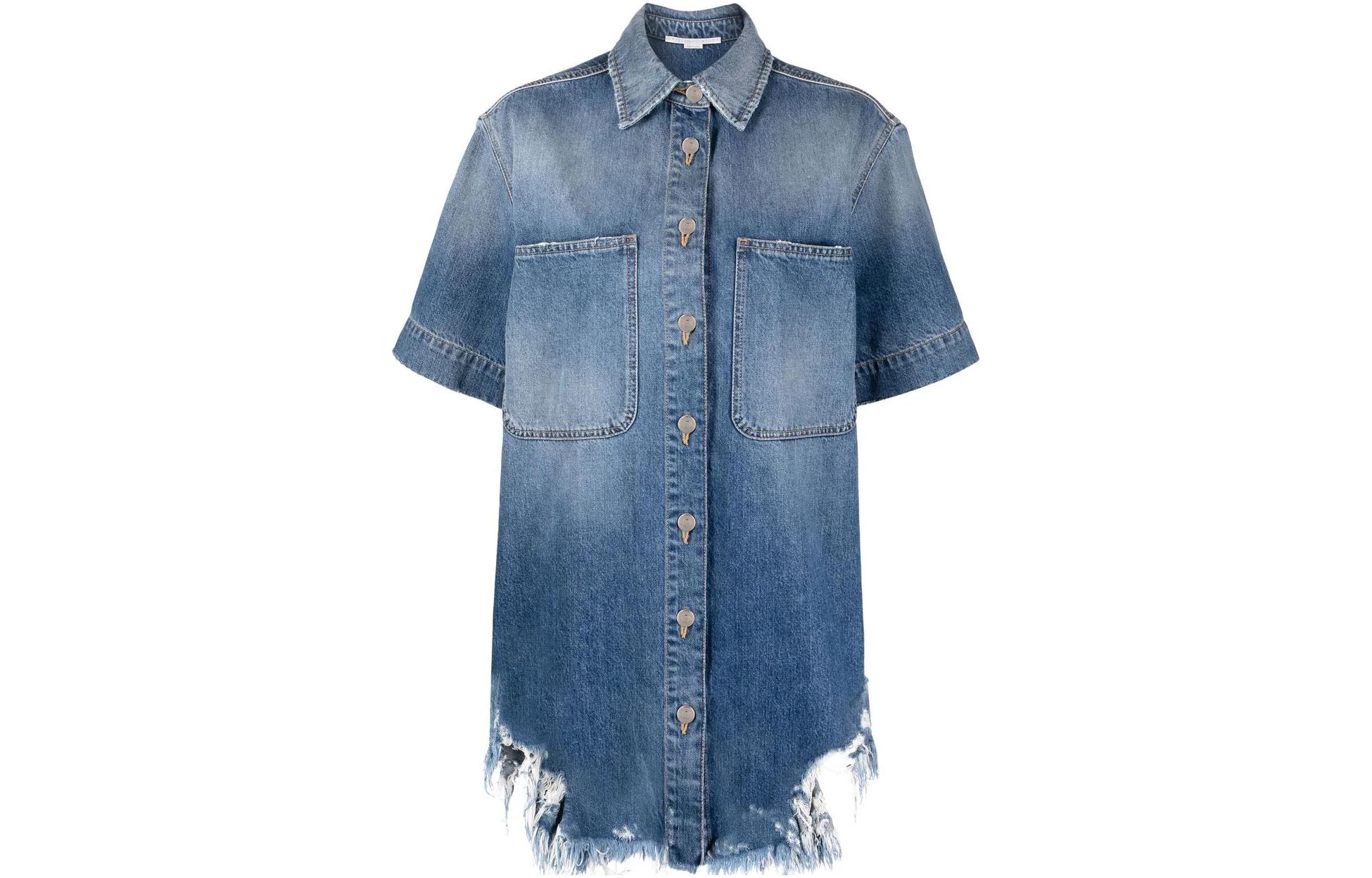 Stella McCartney SS23 撕裂效果下摆短袖牛仔外套 女款 蓝色