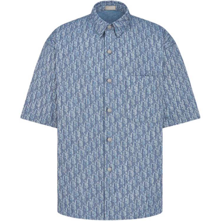 DIOR迪奥 FW25 秋季男装系列 棉质斜纹Oblique印花短袖衬衫 男款 蓝色