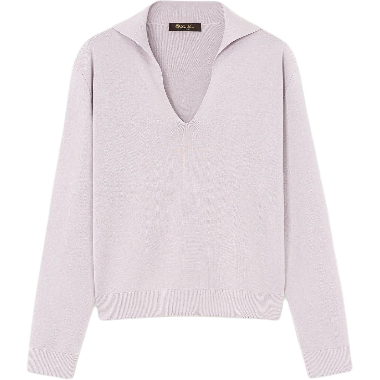 Loro Piana 真丝无缝领无扣V领长袖上衣Polo衫 女款