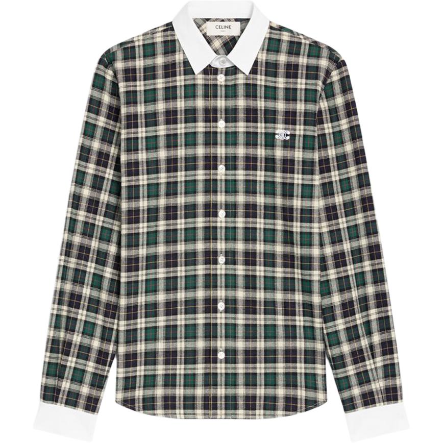 CELINE赛琳 FW25 冬季系列 棉质刺绣格纹单排扣衬衫 女款