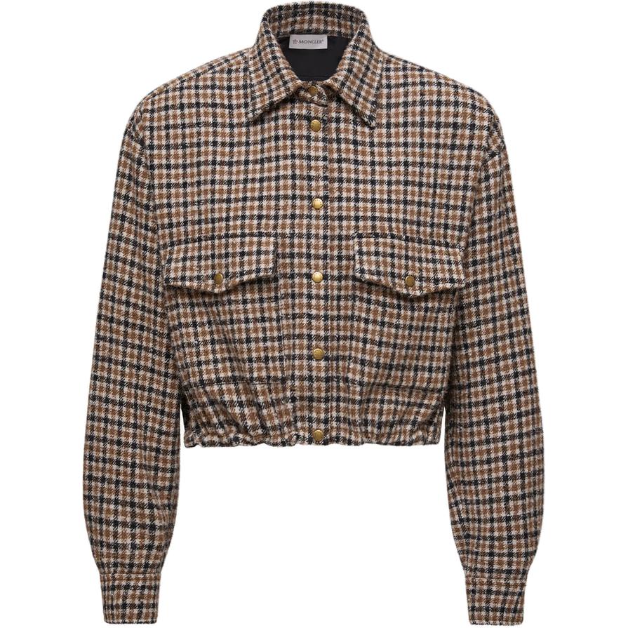 Moncler盟可睐 Check Wool Blend Long Sleeve Shirt 格纹单排扣长袖衬衫 女款