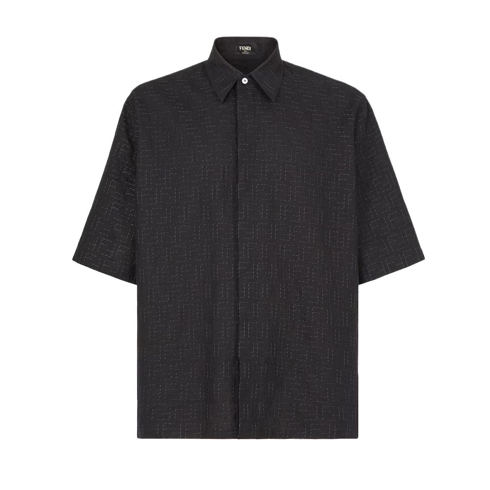 FENDI芬迪 SS25 纯色宽松短袖衬衫 男款 黑色
