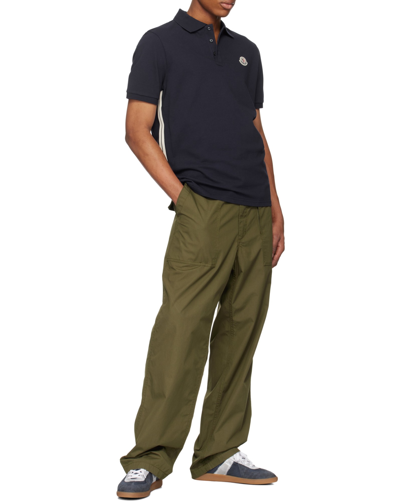 Moncler盟可睐 SS25 侧面点缀条纹饰边棉质短袖Polo衫 男款 深蓝色