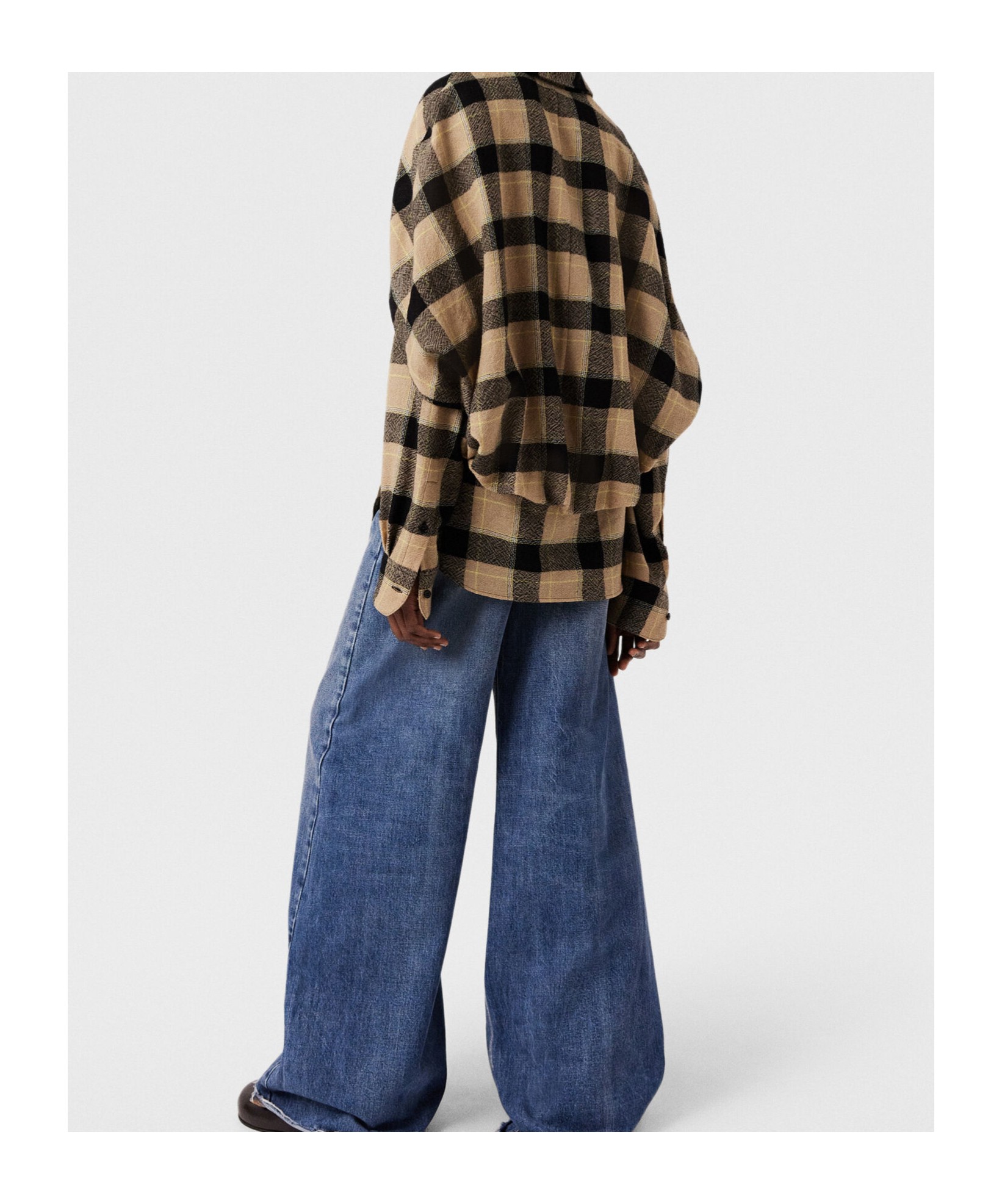 Stella McCartney FW24 格纹斗篷式层叠单排扣休闲长袖衬衫 女款 米色