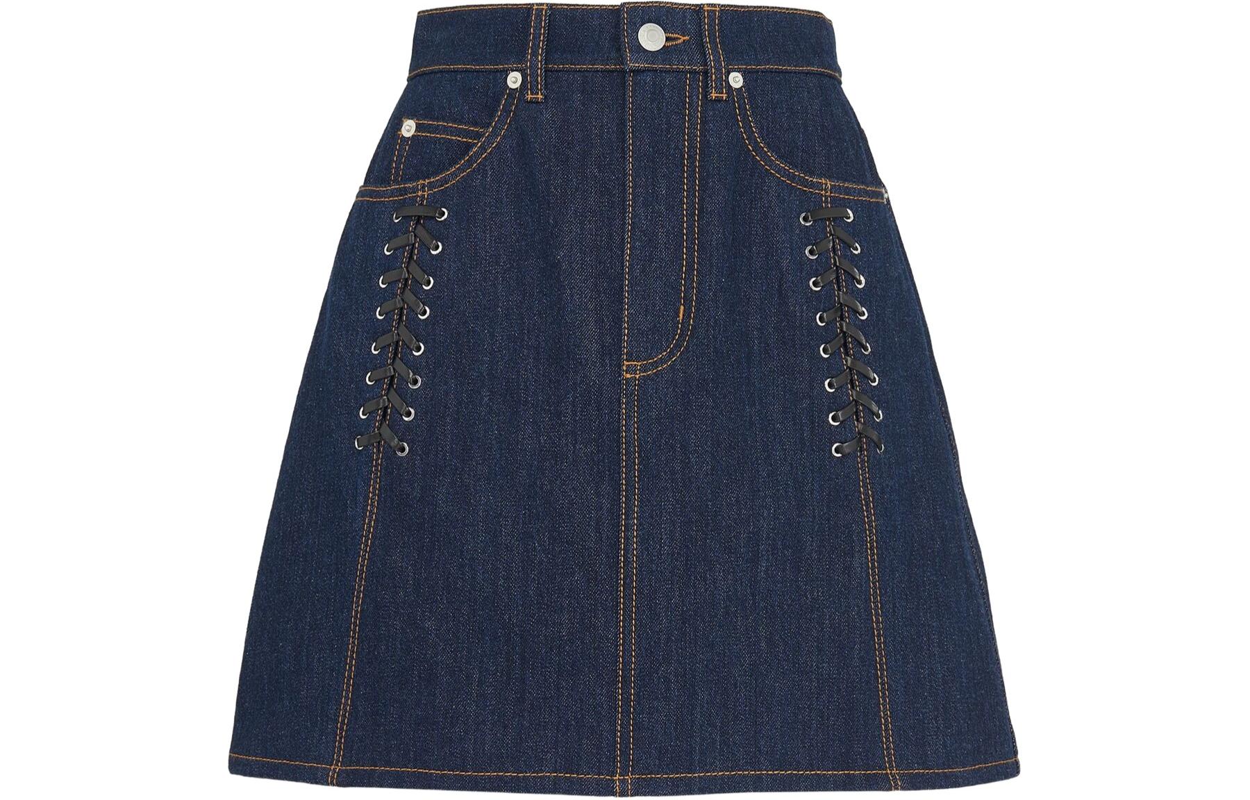 蓝色侧系带牛仔半身裙