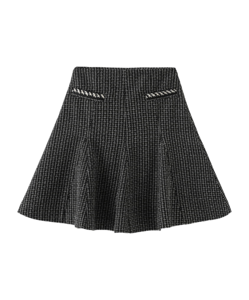 Valentino华伦天奴 短款粗花呢纽扣直筒休闲短裙 女款 黑色