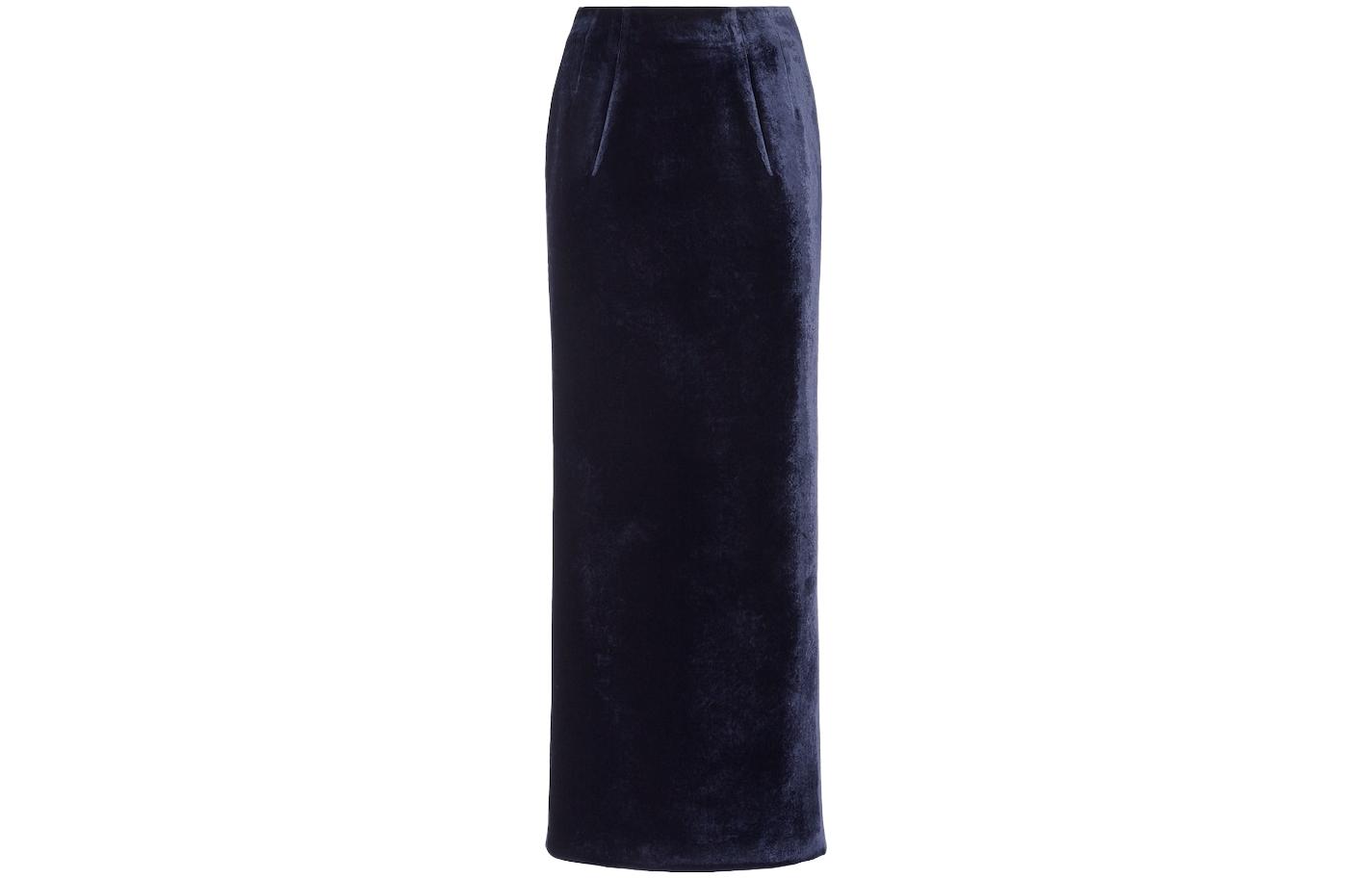 FENDI芬迪 FW23 Velvet Skirt 纯色高腰长款后拉链修身休闲长裙 女款 藏青色