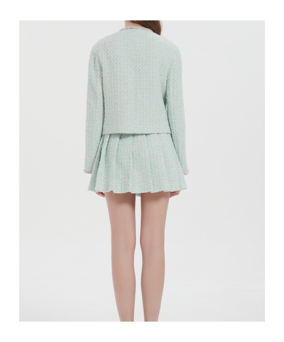 DIOR迪奥 Or 棉质混纺粗花呢藤格纹喇叭拉链短款休闲短裙 女款 白色