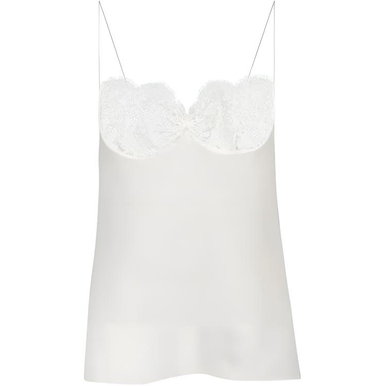 SAINT LAURENT圣罗兰 FW22 透明蕾丝边无袖吊带背心 女款 白色