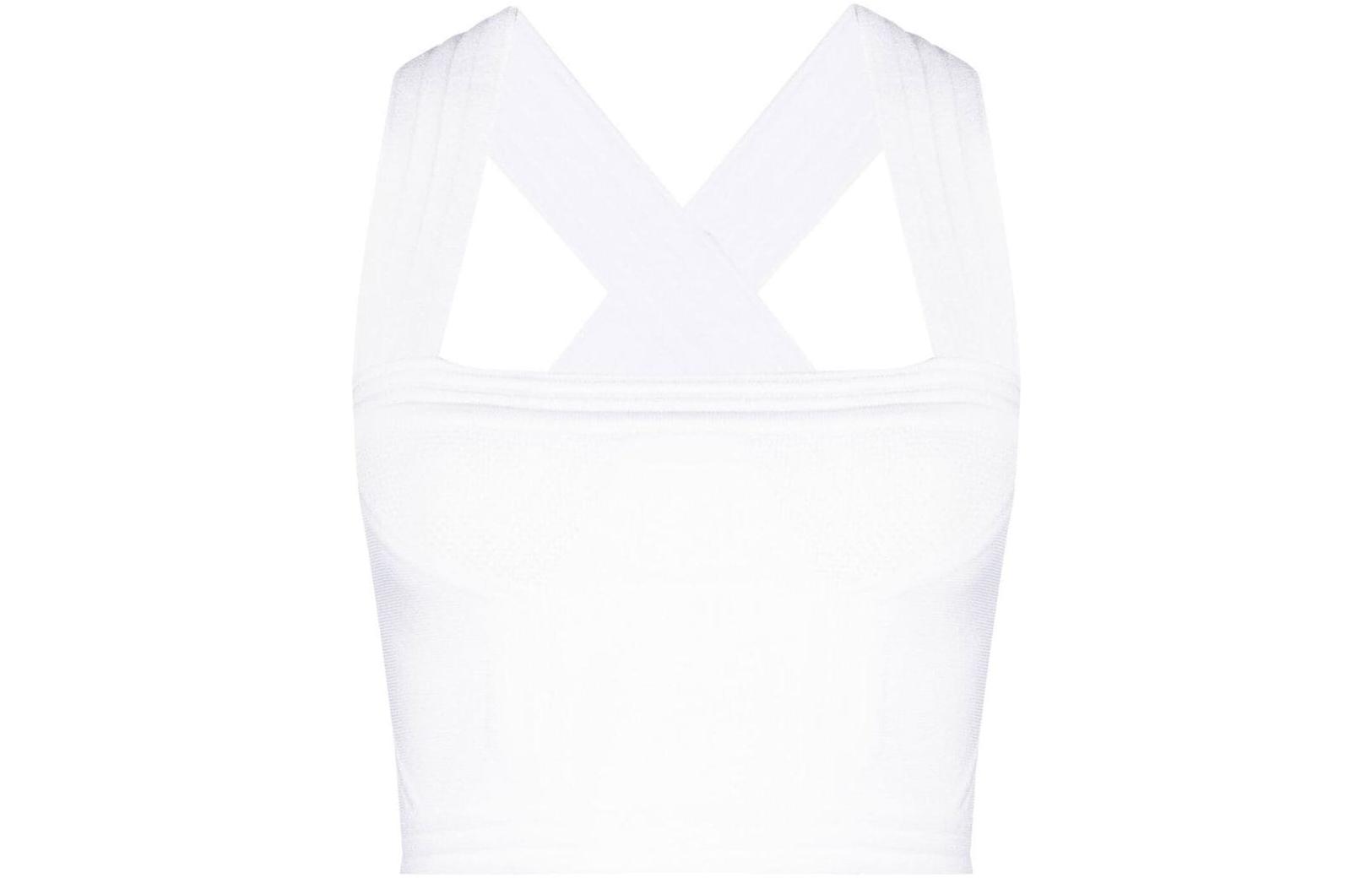 BALMAIN FW22 几何图案拼接短款吊带背心 女款 白色