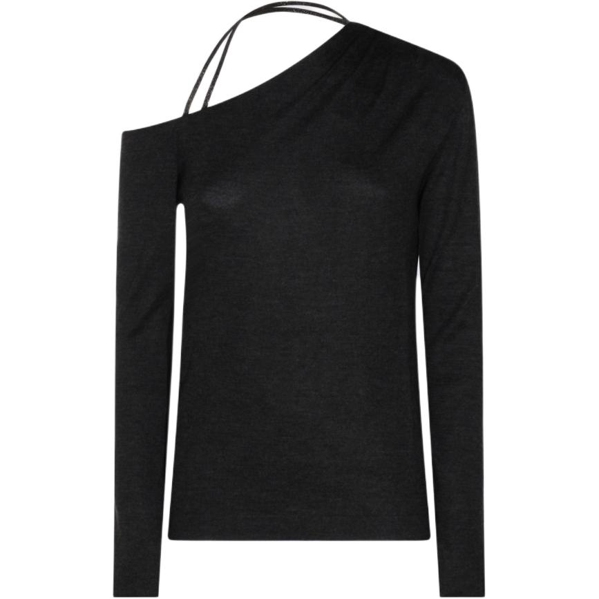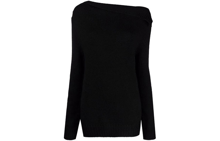 Ann Demeulemeester FW21 不对称垂坠领套头修身毛衣 女款 黑色