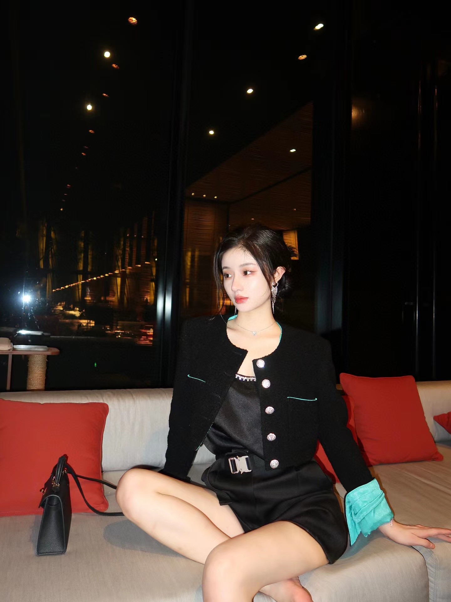 黑绿撞色花呢短夹克