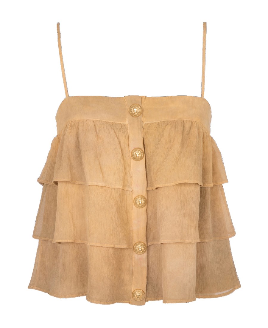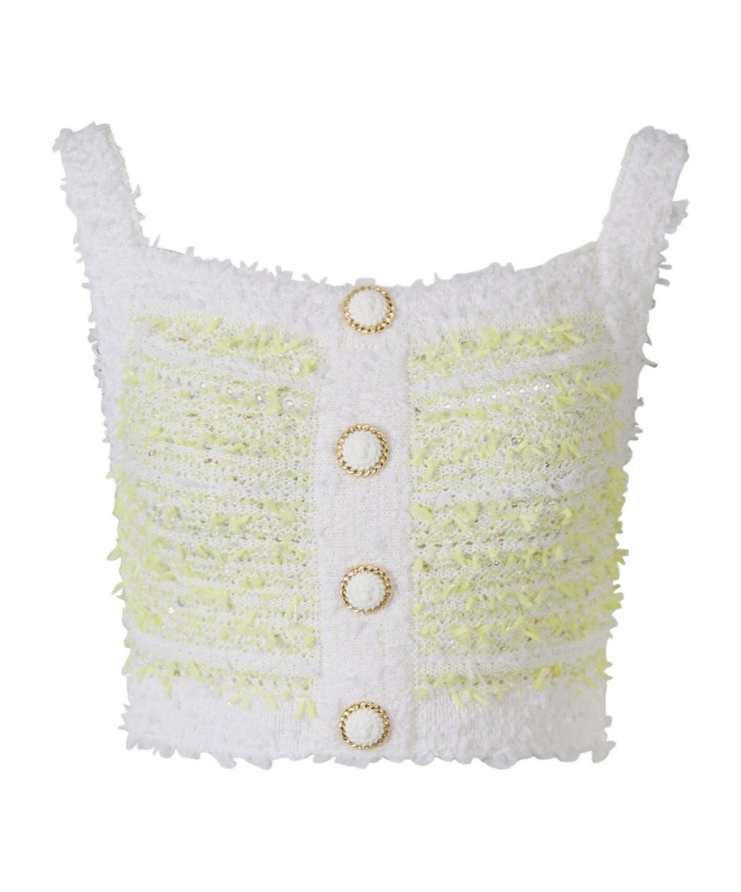 BalmainHair 亮片短款方领修身套头无袖背心 女款 黄色