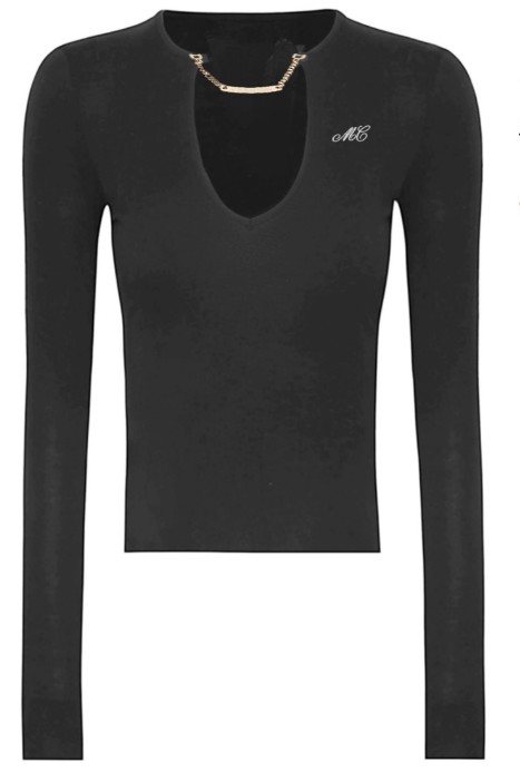 SAINT LAURENT SS21 纯色蕾丝喇叭长袖衬衫 女款 黑色