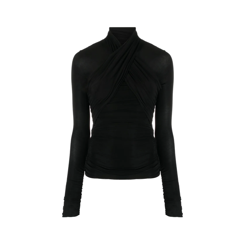 SAINT LAURENT圣罗兰 纯色高领套头长袖 常规T恤 女款 黑色