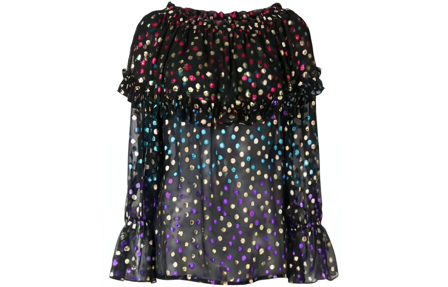 SAINT LAURENT圣罗兰 SS23 波点印花一字肩衬衫 女款 黑色