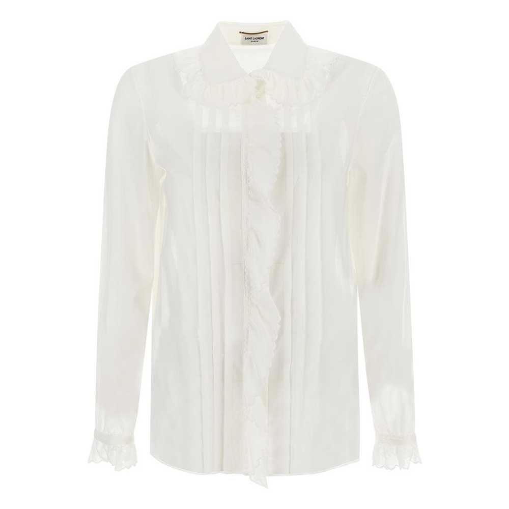 SAINT LAURENT圣罗兰 FW21 徽标Logo印花纯色长袖衬衫 女款 白色