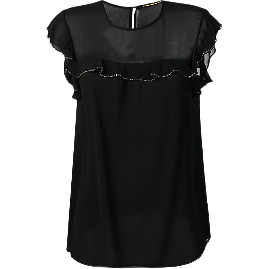 SAINT LAURENT圣罗兰 SAINT LAURENT SS22 蕾丝圆领套头短袖衬衫 女款 黑色