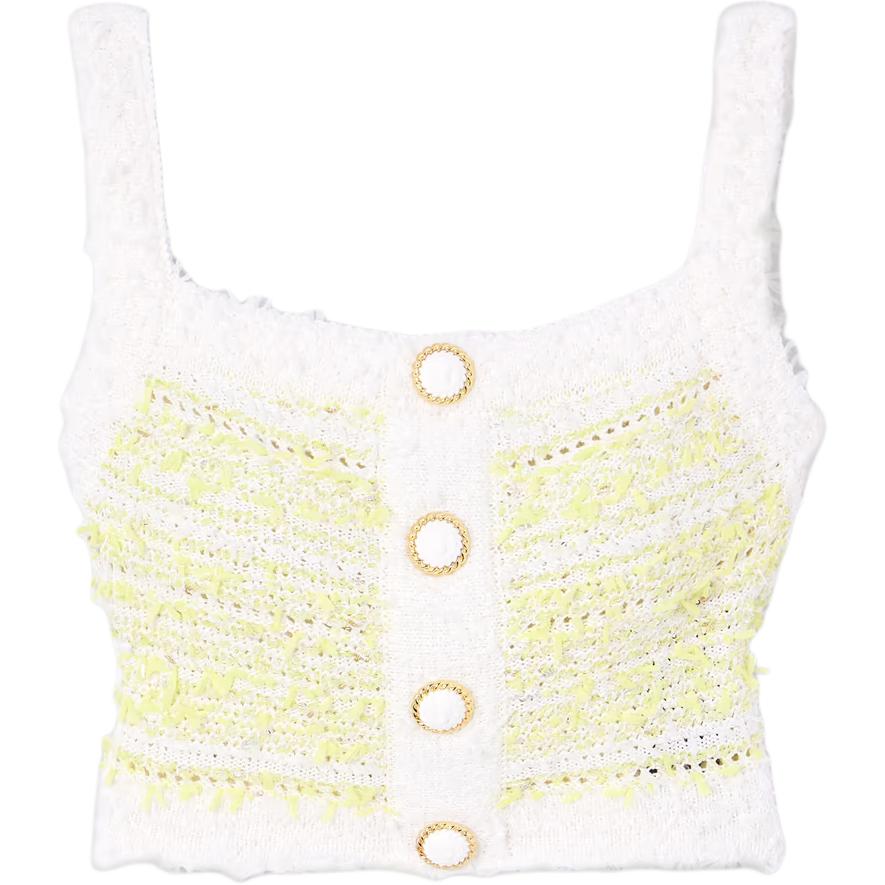 BalmainHair 亮片短款方领修身套头无袖背心 女款 黄色
