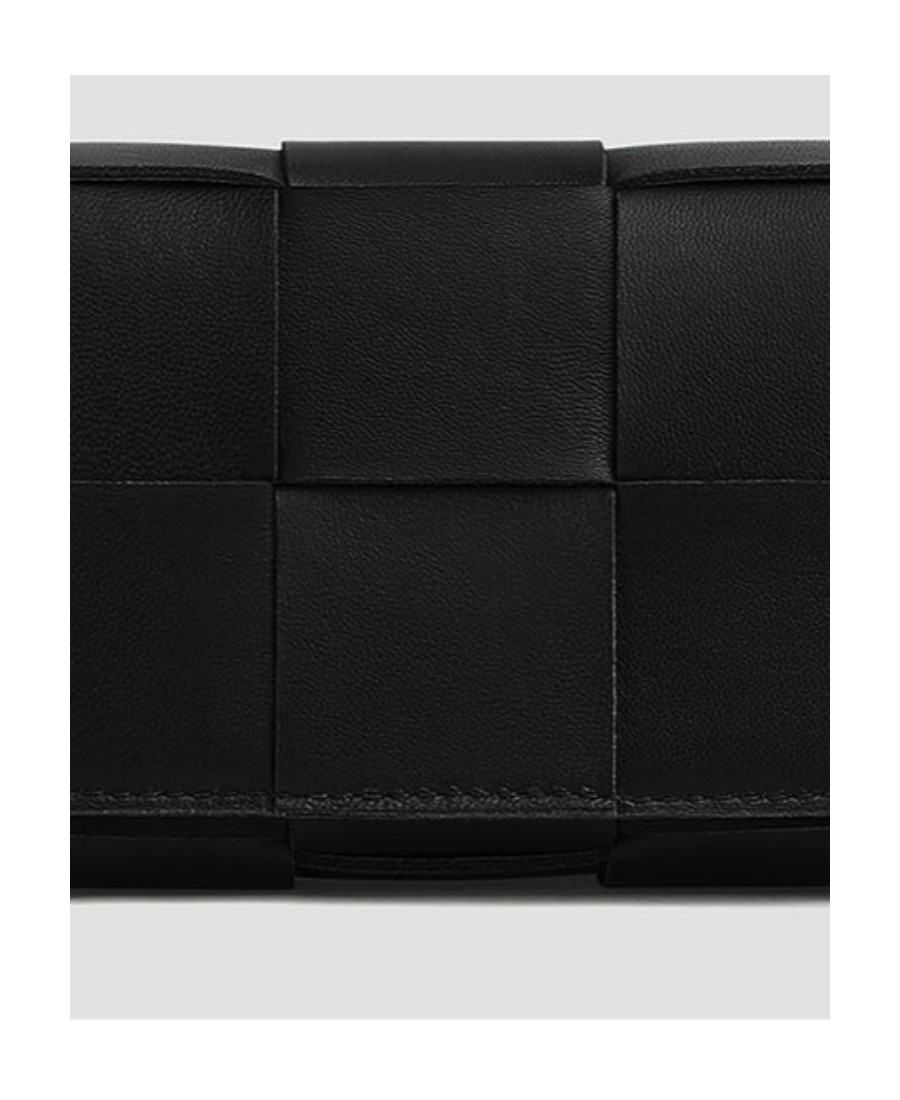 Bottega Veneta葆蝶家 CASSETTE 经典编织可调节肩带6格 羊皮革 豆腐包格子包斜挎单肩包 女款 黑色