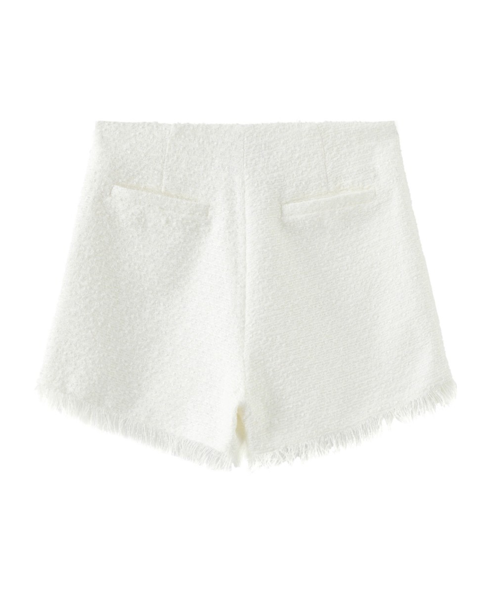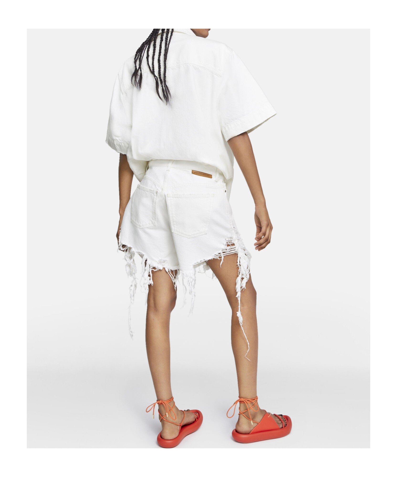 Stella McCartney SS23 纯色毛边做旧牛仔短裤 女款 白色