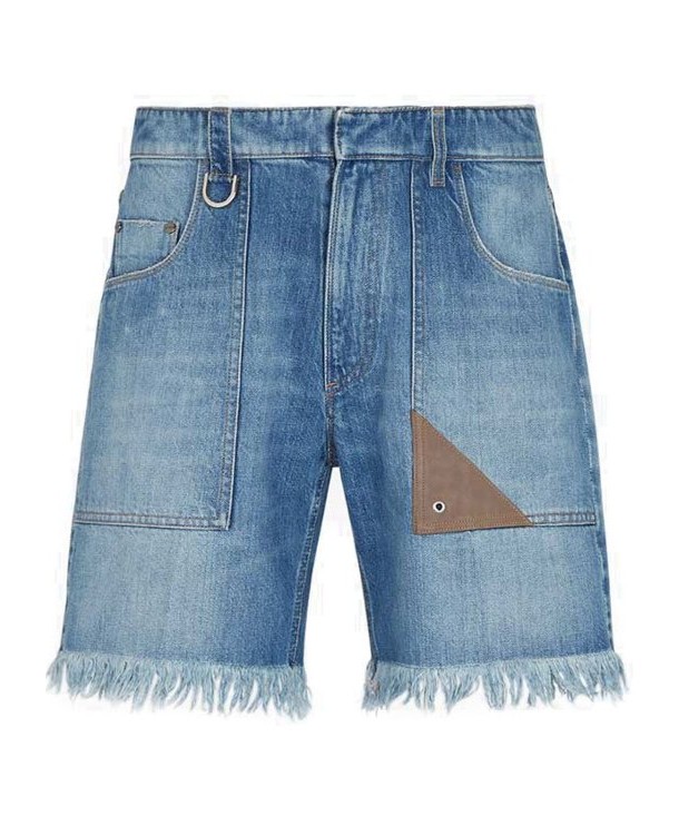 FENDI芬迪 SS23 纯色大口袋毛边休闲短裤 男款 蓝色