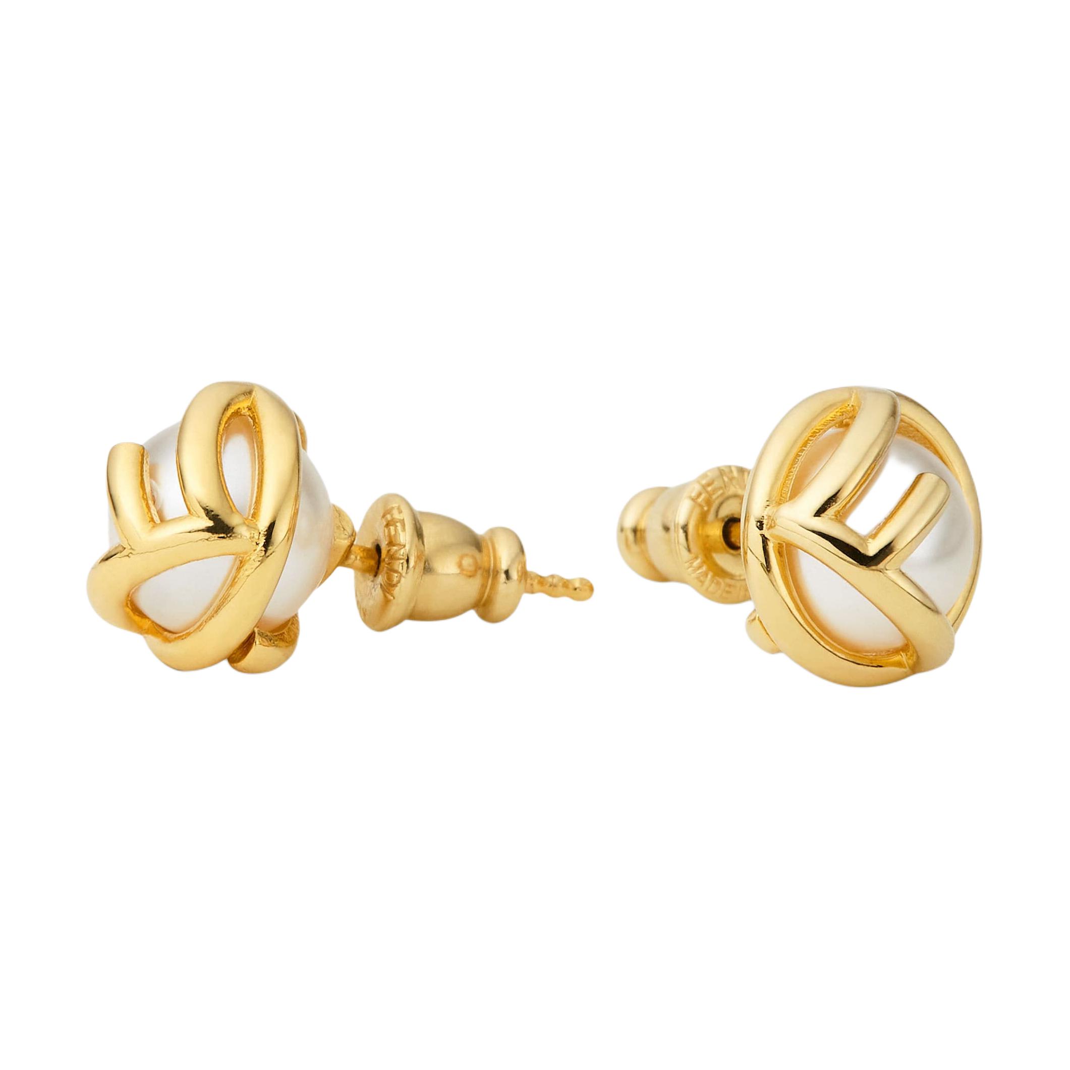 FENDI芬迪 镶嵌设计 黄铜 耳钉 女款 金色